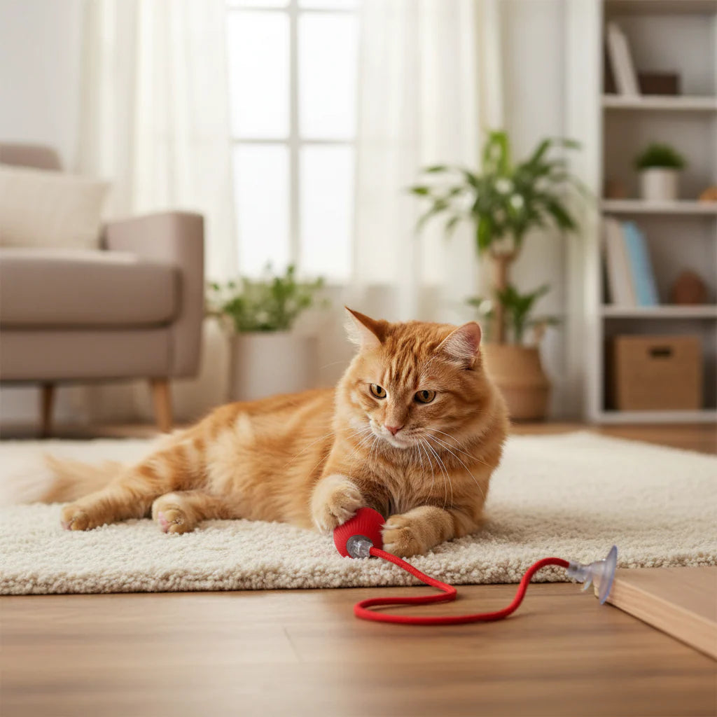 Zodra je hem aanzet, komt je kat weer tot leven — ogen groot, staart omhoog, meteen klaar om te spelen. Dat kleine sprongetje, dat enthousiaste miauwtje, dat moment waarop je ziet: