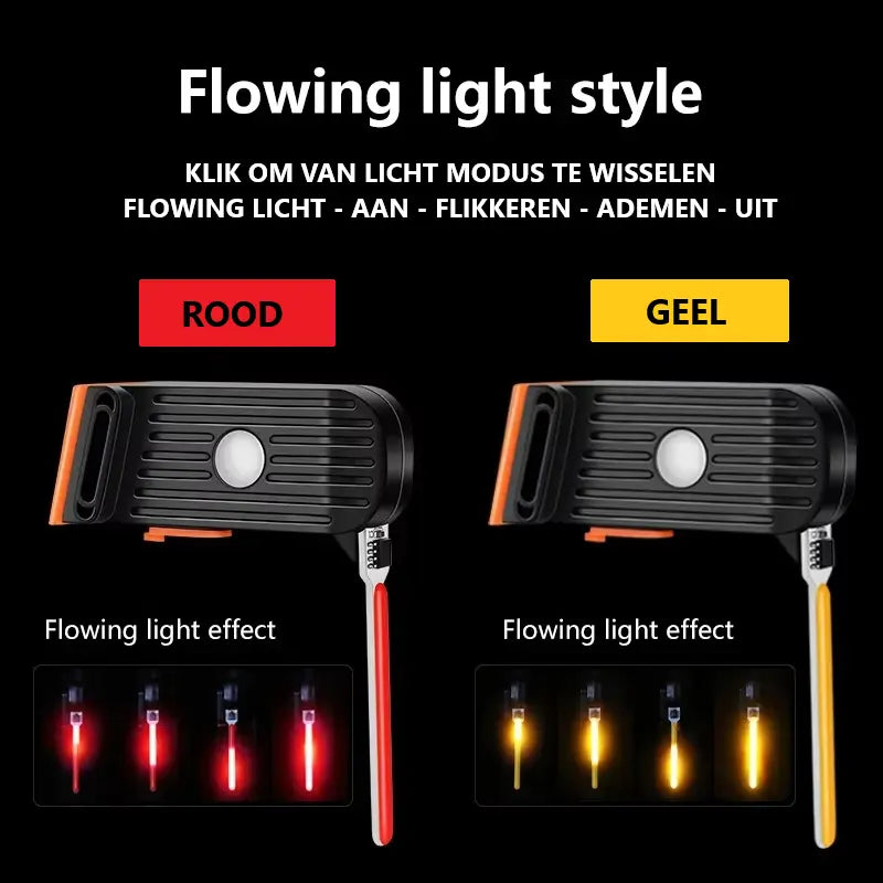 360° extreem helder licht Werkt in regen mist en kou Zorgt dat niemand je over het hoofd ziet.