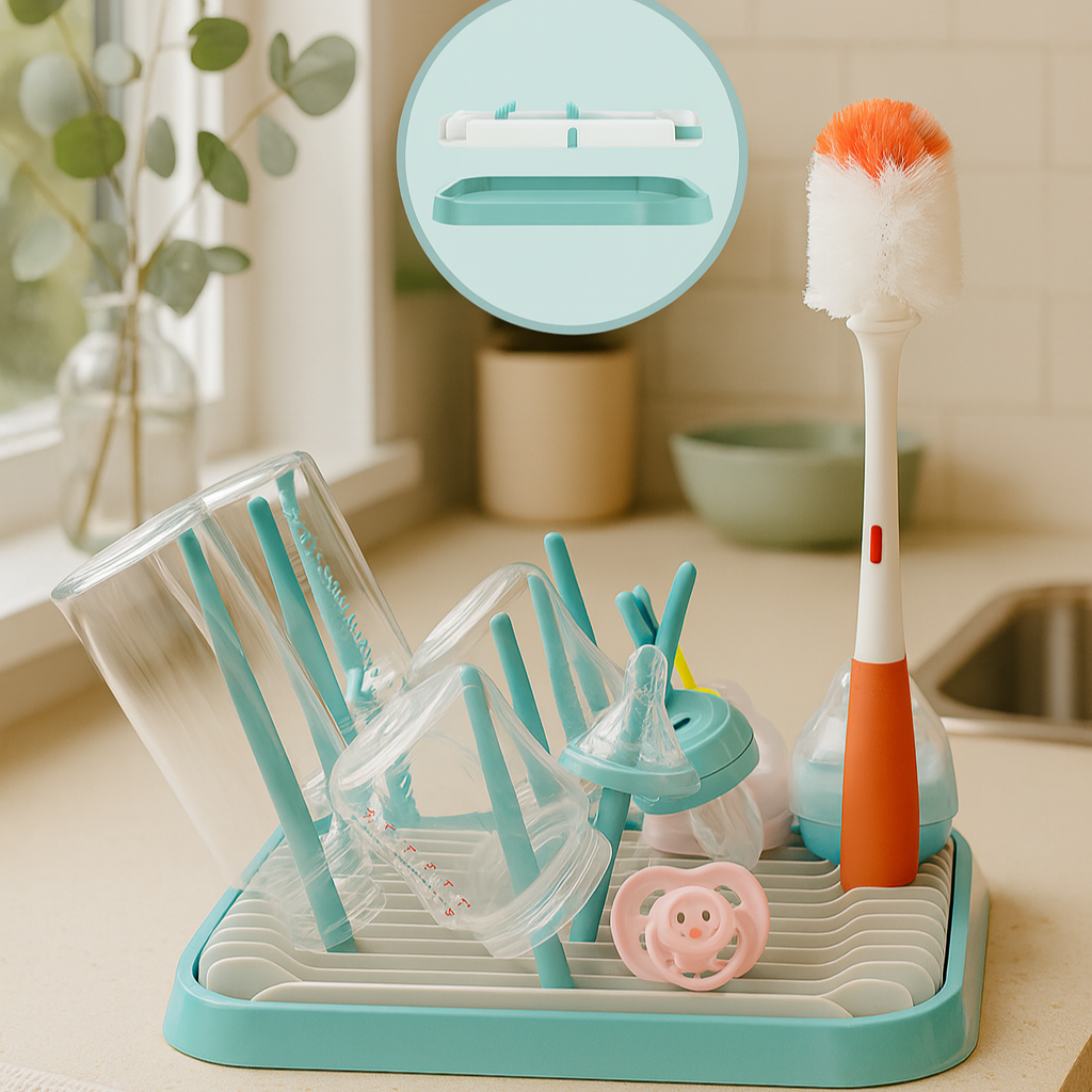 Met het opvouwbare babyfles droogrek wordt je aanrecht weer overzichtelijk en hygiënisch. Geen rommel, geen stress — alle spullen op één plek.
